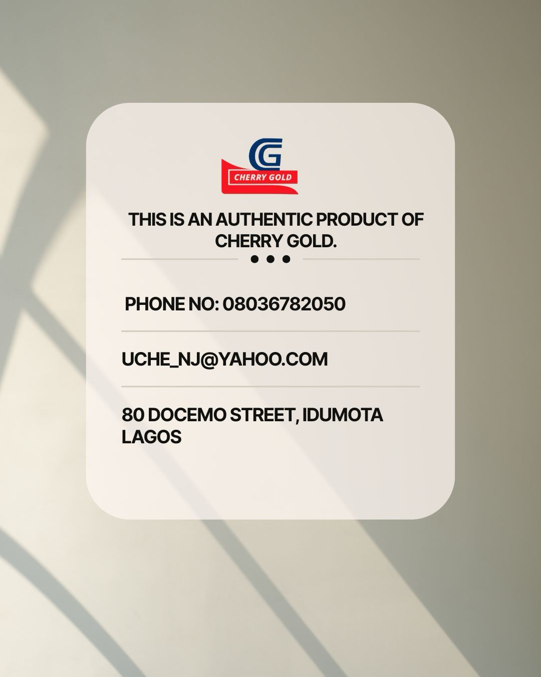 This is an authenticate product from Cherry Gold